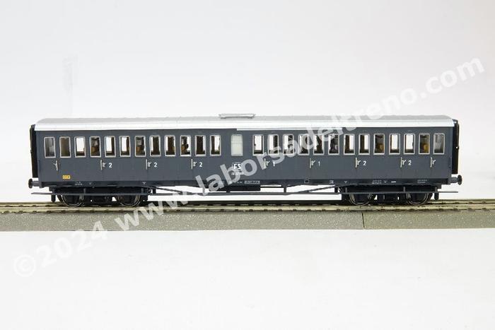 Set due carrozze per traffico locale FS, una tipo 1951R 'Corbellini' di 2° cl. e una tipo tipo 1949R 'Centoporte' mista di 1°/2° cl., livrea grigio ardesia, logo TV, epoca IV