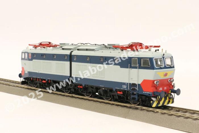 Locomotiva elettrica FS E 656 di 4° serie, senza gocciolatoio, con smorzatori anti-serpeggio, livrea di origine grigio/blu, epoca V