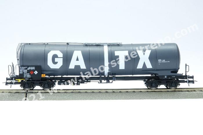 Coppia cisterne a carrelli DB AG tipo Zacns da 95 m3, livrea grigio con logo 'GATX' grande, epoca VI