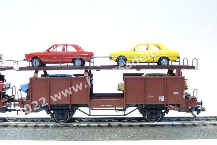 Convoglio merci SBB composto da un carro Eaos, un carro chiuso, un carro refrigerato e uno trasporto auto con carico, epoca IV - Insider Club 2018