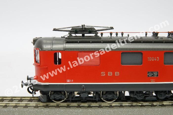 Locomotiva elettrica SBB Re 4/4 10043 di 1° serie con frontale chiuso, livrea rossa, epoca IV