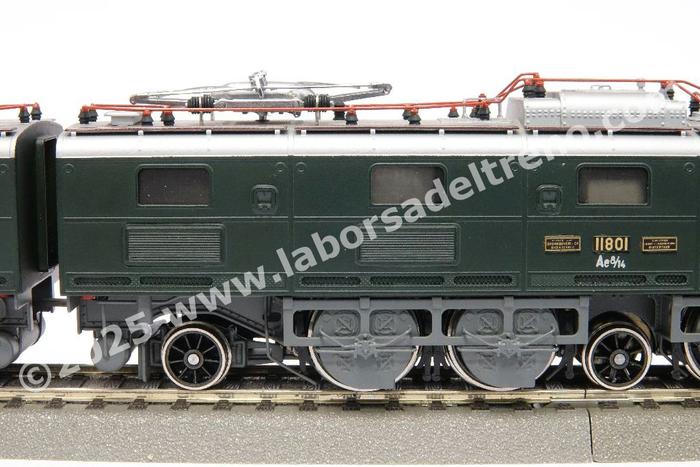 Locomotiva elettrica Ae 8/14 11801 delle SBB, livrea verde con avancorpi, ep. III