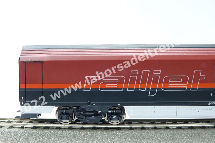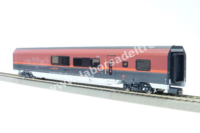 Set 2 'OBB Railjet 059' delle OBB composto da due vetture intermedie, una mista 'Ristorante-First' e una 'Economy Quiet zone', livrea RailJet, epoca VI - Ill. interna con condotta elettrica, Esclusiva per Pirata